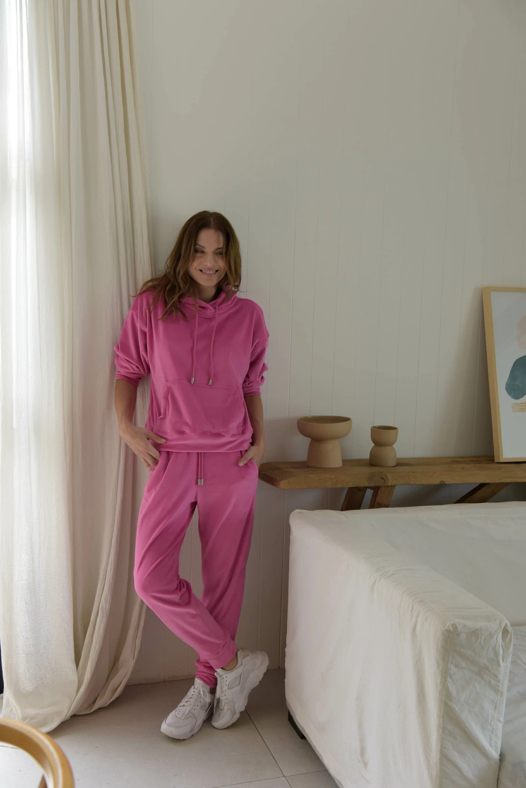 Pantalón confeccionado en un suave y abrigado Plush, tiene bolsillos en los costados y elástico en la cintura con cordones a tono y terminales metálicos duvian