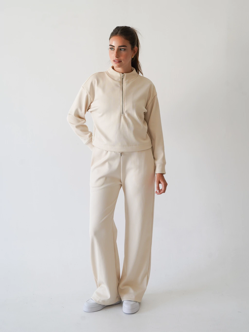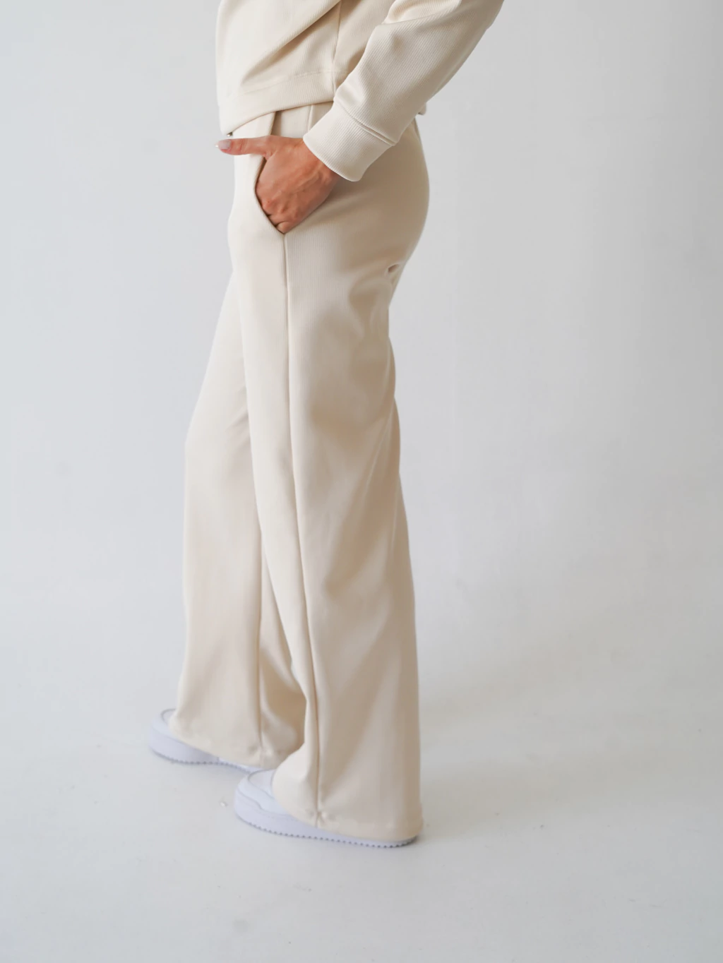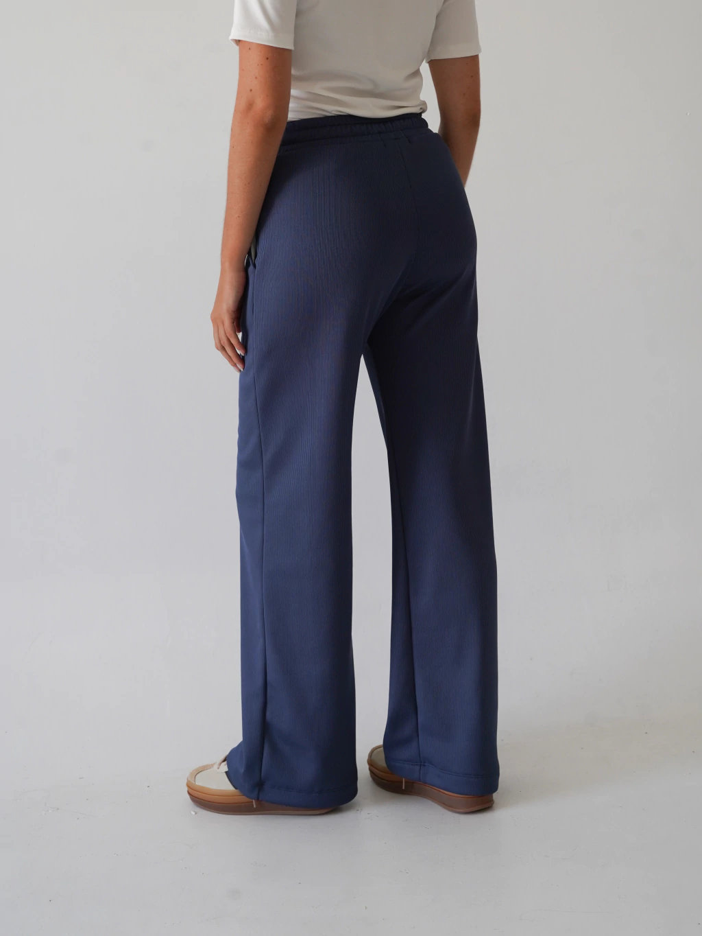 Pantalón de morley acanalado con cintura elástica y lazo ajustable.