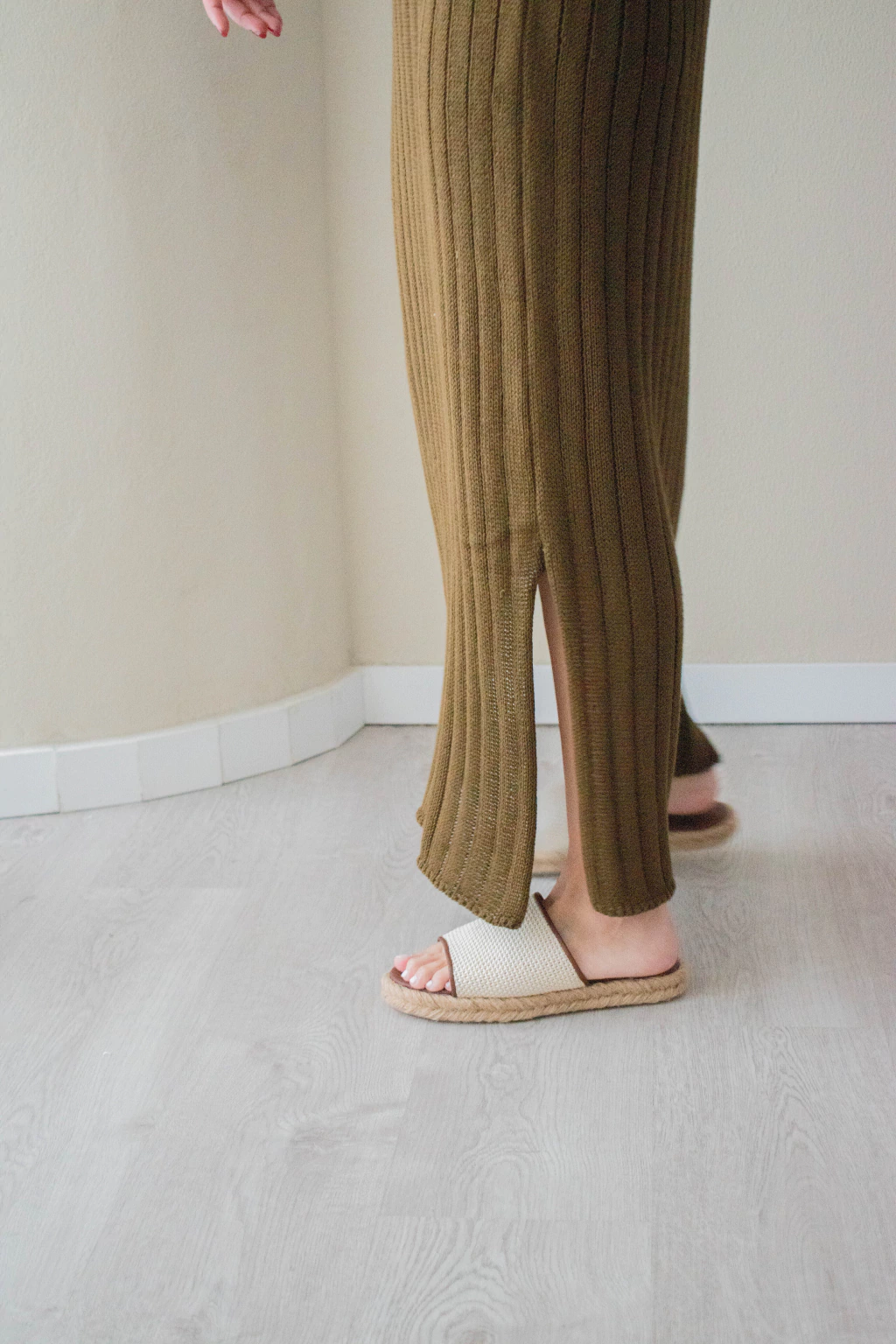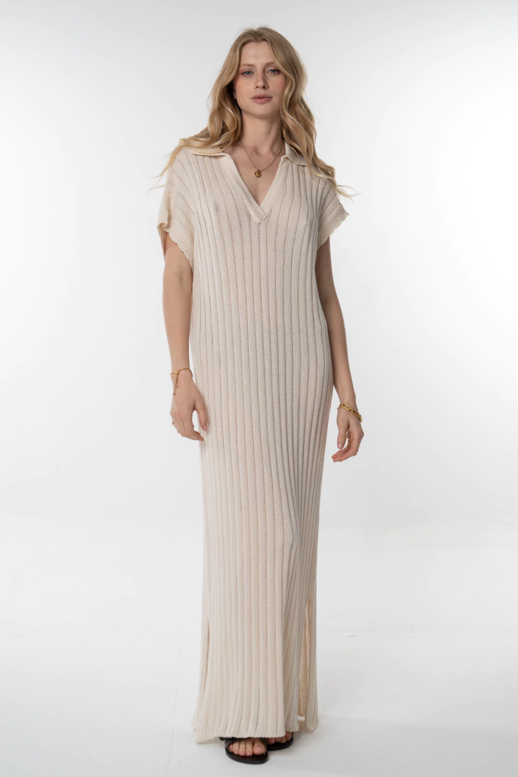 Vestido tejido en 100% algodón con textura acanalada y caída liviana.